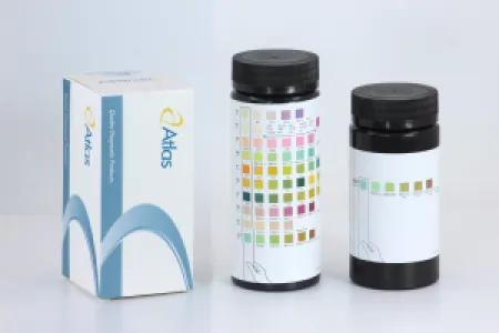 Atlas Medical urine reagent strips can be used to detect up to 14 urine parameters. They are simple to use, and the results are visually read within a minute. The strips are packed in desiccated bottles of 50 or 100 strips. Atlas Medical can also provide suitable readers to read the strip colors and document the results.
